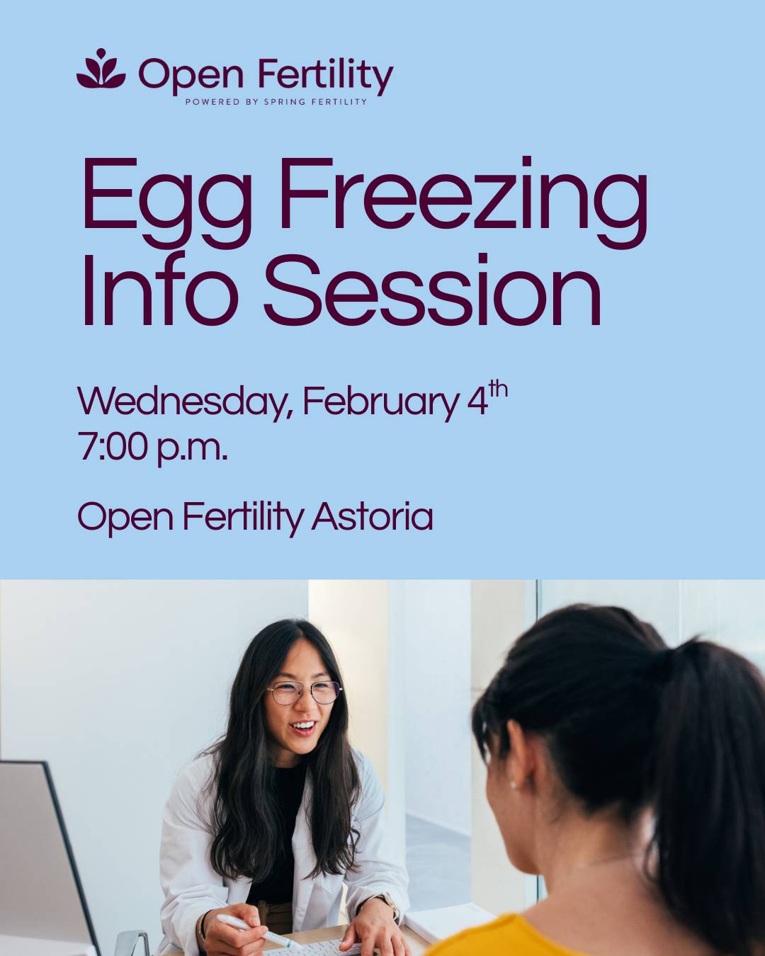 Free info session at Open Fertility Astoria about egg freezing and fertility preservation. Learn about the process, key considerations, and cost options, with time for Q&A. Snacks and beverages provided.